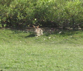 We're really enjoying the outdoors. Sitting out late afternoon, sipping our cocktails is a real treat. However, we have an uninvited, unwanted guest (guests?) that appears during the night to leave presents all over the rug. Sometimes he/she has eyes on Ken when he leaves early morning for a walk. Sweet, but it meant I had to buy a broom and sweep before we can sit out. Maybe a blower would be less trouble. Or, I read about a frog that croaks when something passes in front of it and supposedly scares the bunny away. I just may order one to see if it works. I loved the bunnies in the backyard at The Glenridge, but I didn't have to clean up after them. If you have ideas, let me know.