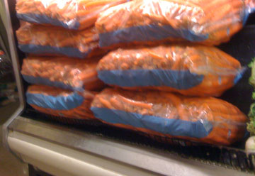 Here's another question. This is a picture from our Von's neighborhood grocery store. I was astounded and just had to ask who would buy huge bags of carrots. They must weigh 20 pounds. Want to guess? Do it now before you read on.