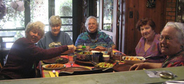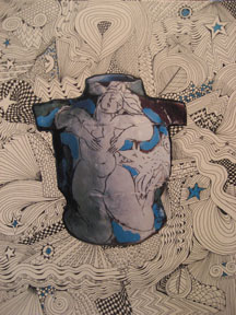 You remember my friends Ruth and Betty? Thursday is creative day at their house, where any of their friends who wish can come together, talk, make things, share a lunch and generally have a nice time. I was invited and went. Ann, Joanne, Ruth, Betty, and Betty, all wonderfully artistic. The two drawings came from Betty. She chooses something out of a magazine that suits her fancy, then draws intricate patterns around them. So, all the background lines you can see were done freehand. She has lots of these and we all thought she should put them in a gallery.