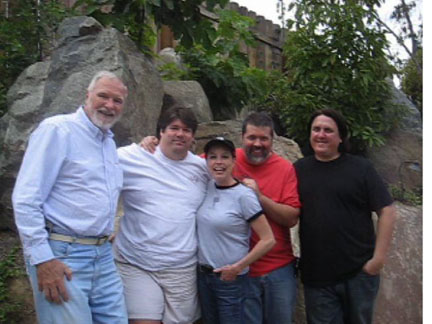 Left: Eric, Andy, Scott Below: Ken, Eric, Missy, Andy, Scott It was to be Missy's 40th birthday next week, and they carded her coming in. Wouldn't it be great to look 20 years younger than you are? You can see all the "stones" around the property. They have lovely gardens and pools and outdoor fire pits. |