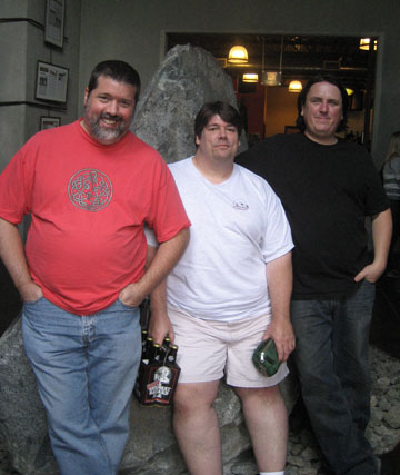 Sons Eric and Andy drove to their favorite spot in Escondido — Stone Brewery — to meet us for lunch. Their friend Scott Martin and an old friend of his from childhood — Missy Nungesser — also came. The beer is evidently world class (try Stone Pale Ale sometime if you have the chance). I was designated driver so Ken enjoyed his beer. So here are some pictures.