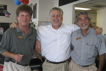After lunch Ken and I went to see the 2006 Saturn, and much to our dismay it had already been a tow car and did much lurching about. So our Saturn sales team — Cliff, Brad, and Antony — went to work to find us another.