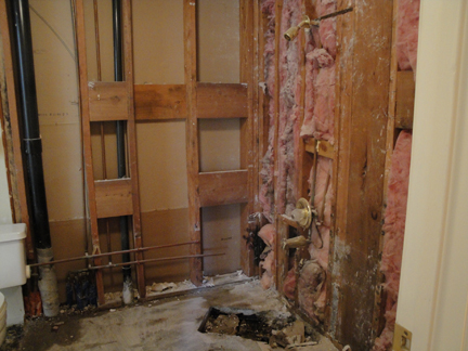 Just so you don't think all of this is a neat process, here are two pictures showing how bad it is. One is the garage and the other is what the new shower looks like at the moment, before laying the tile.