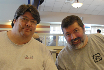 The first Saturday in October there is an all-village flea market, held in the front parking lot. Individuals and clubs may have a table. The Woodchucks (people who like to make things with wood) host a hot dog stand and a "free" table where donations go to Camp Pendleton. I was frankly surprised that Ken wanted to go with me, but he was the one who found many things to buy, one of which was a one-year-old unused printer, to replace the one stolen from the Moose.