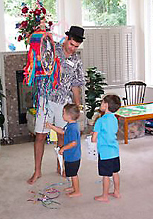 The theme of the party was "Magic." A magician visited, and Ken handled a pinata.