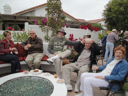 Alice Robeson, Barry Farrell, Craig Powers, Bill and Priscilla Baker sit around the firt pit.