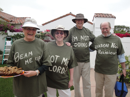 In costume, Nancy Powers, Ricki Weinberger, Craig Powers, and Alan Willson bring in some desserts