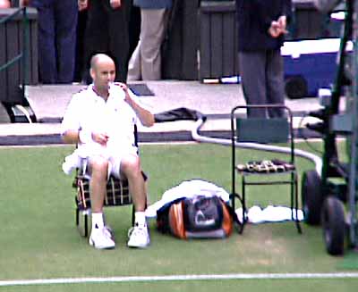Andre Agassi sipping some water prior to his match. |
