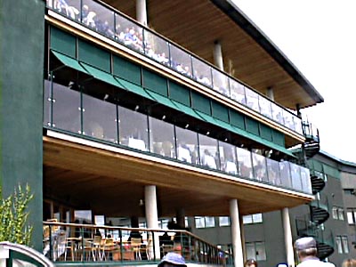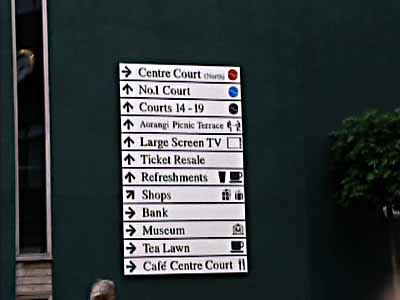 | Stan told us that there is very little advertising on Centre Court, compared to other tournaments. IBM sponsors the service speed board, Rolex sponsors the score board, and Slazinger sponsors the balls and has one small name on the side of the courts. | ||||||||||||||||